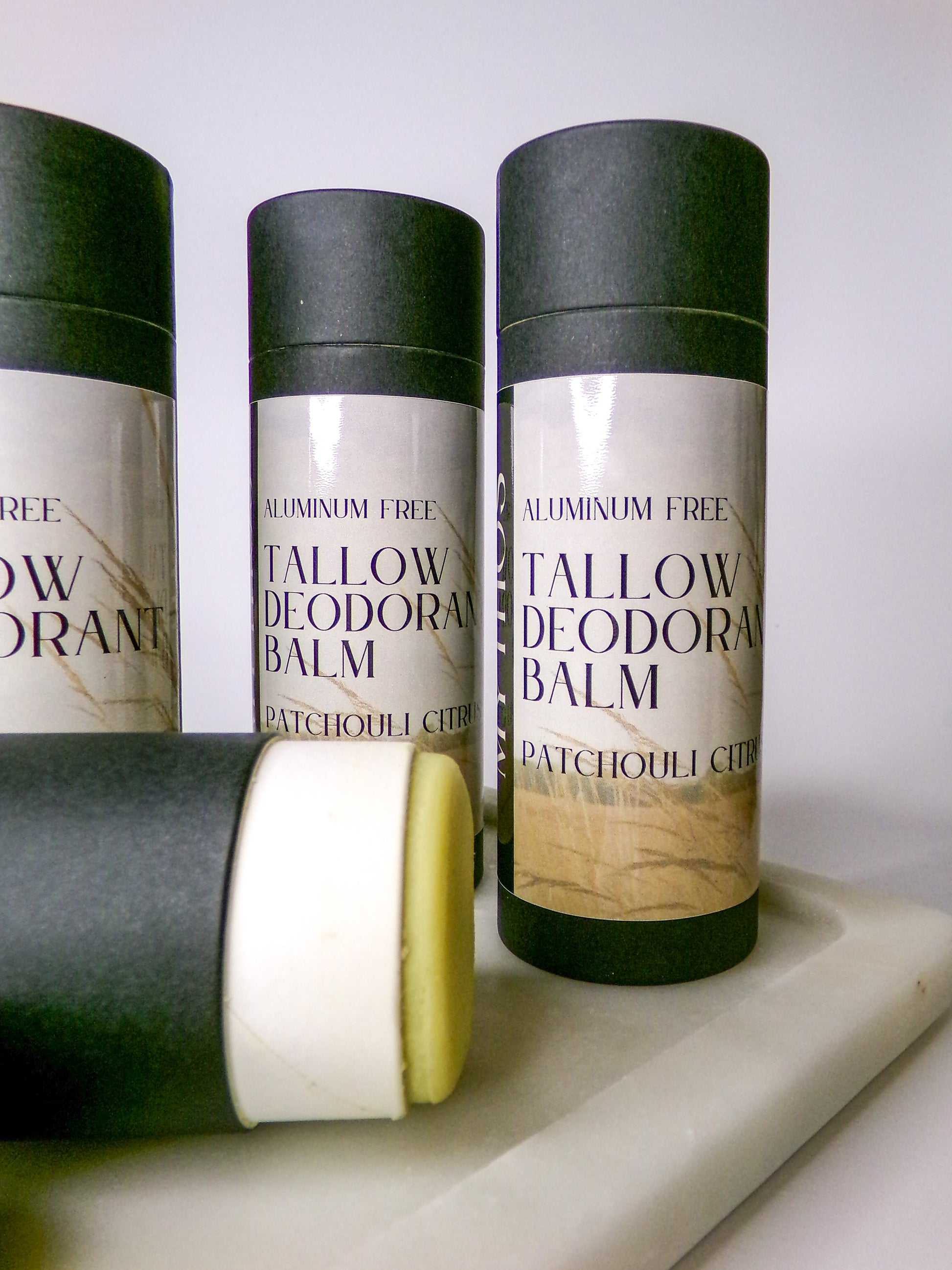 Our handcrafted tallow deodorant delivers all-day freshness without harsh chemicals. Made with grass-fed tallow to nourish and soothe sensitive underarms, arrowroot powder to absorb moisture, magnesium to neutralize odor, and a gentle essential oil blend of patchouli and sweet orange for a subtle, uplifting scent.
